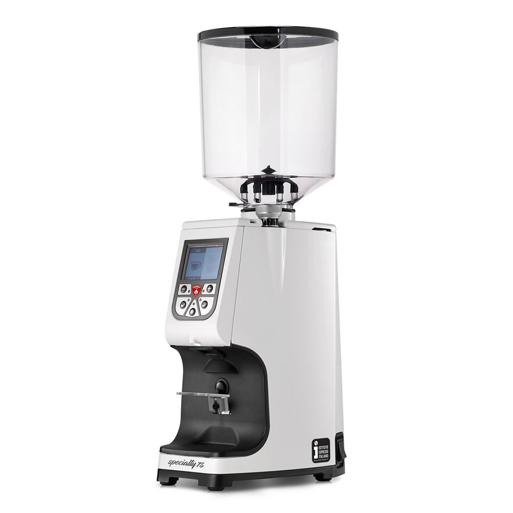Eureka Atom Specialty 75 E klame tělem. Na první pohled velmi kompaktní mlýnek v sobě ukrývá obří výkon určený pro kavárny a rušné gastro provozy. Masivní 75mm ocelové kameny zvládnou namlít až 5 gramů kávy za vteřinu. Přidejte k tomu odhlučněný chod, hands-free vidlici na páku a přesné časování – a máte spolehlivého dříče, který se porve s každou špičkou.