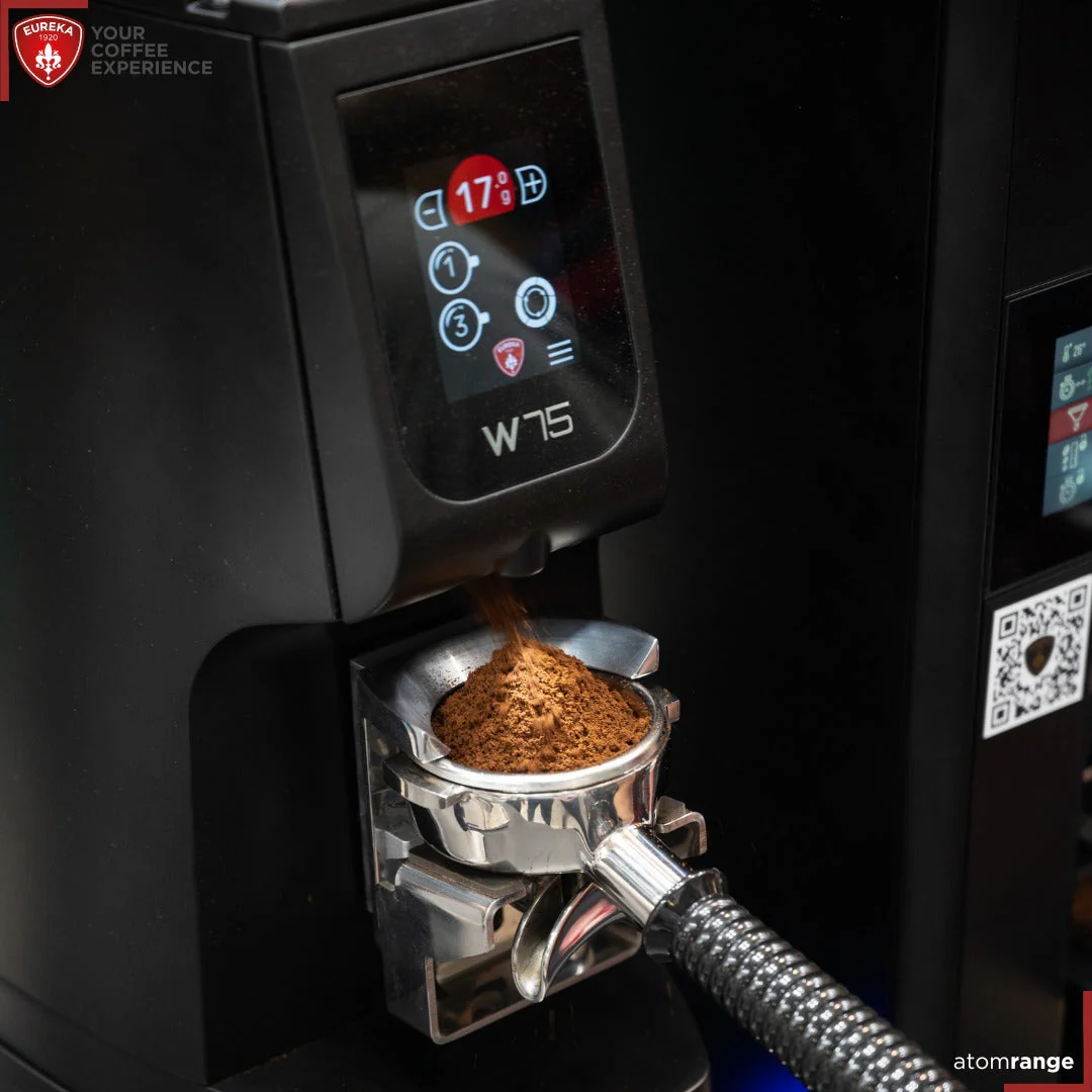 Díky integrované technologii vážení v reálném čase , masivním plochým 75mm kamenům a extrémně tichému chodu je Eureka Atom W 75 skvělou volbou pro rušné kavárny. Rychlost, přesnost a nulové hrudkování.